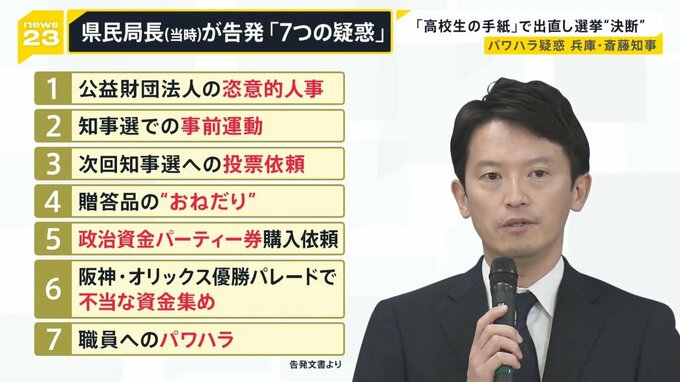 ただ斎藤知事には、贈答品おねだり疑惑やパワハラ疑惑など7つの疑惑があります。