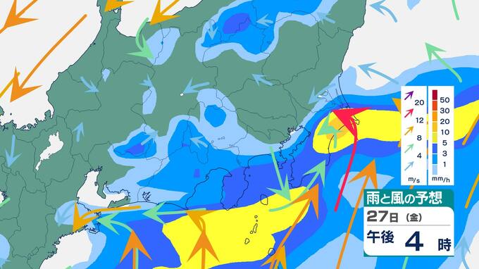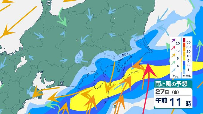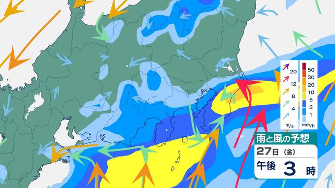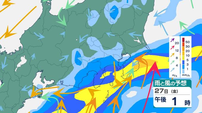 静岡県もあすかけ大雨となるおそれ 雷を伴った激しい雨が降るところも 1時間予想降水量 伊豆50ミリ 中部・西部・東部ともに40ミリ【雨風のシミュレーション1時間毎】 チューリップテレビ 2024年9月27日(金) 11:36 国内 暮らし・マネー 雨風のシミュレーション27日(金)