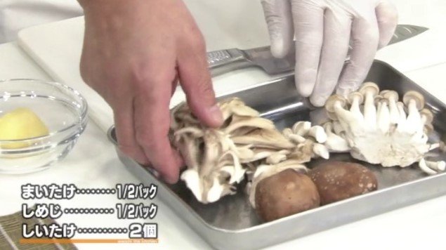 1.きのこは食べやすくばらす、生姜はせん切りにする。