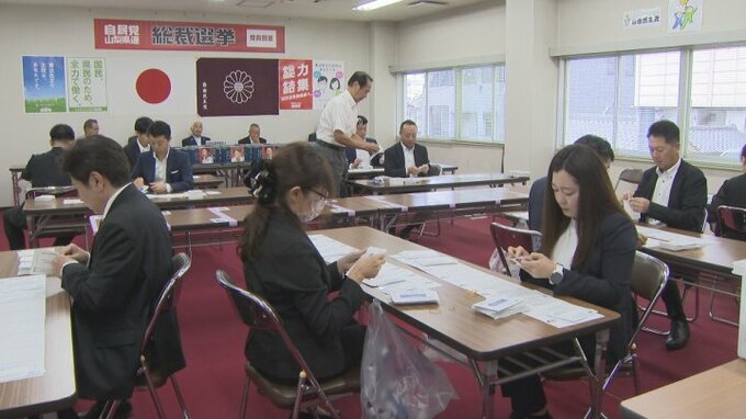 県内では党員・党友1万5125人に投票権があり、27日、県連で開票作業が行われました。