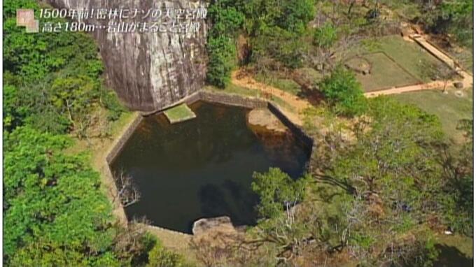 スリランカにも「古代都市シーギリヤ」という世界遺産があります。ここは高さ180メートルの巨岩の頂上に宮殿の遺跡があり、「天空の宮殿」として有名です。この天空宮殿に目を奪われがちですが、空から引いて撮影すると、宮殿のある岩山を中心として濠で囲まれたエリアがあり、その全体が王宮だったのです。
