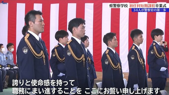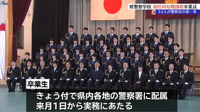 岩手県警察学校で卒業式が行われ、半年間の学びを終えた34人が新人警察官としての第一歩を踏み出しました。