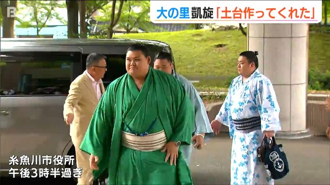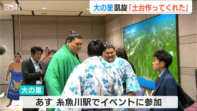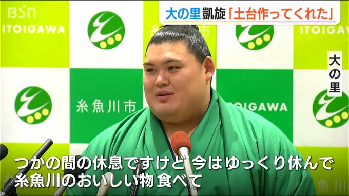 【大の里】「つかの間の休息ですけど、今はゆっくり休んで糸魚川のおいしいものを食べて、また来週から九州に向けて再始動したい」