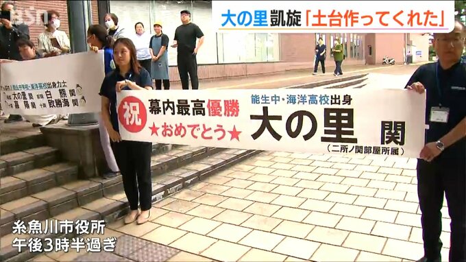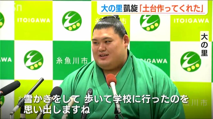 大相撲秋場所で優勝し、大関昇進を決めた大の里が中学、高校時代を過ごした第二の故郷 新潟県 糸魚川市を訪れ、優勝の報告とともに「自分の土台を作ってくれた」とふるさとへの思いを語りました。