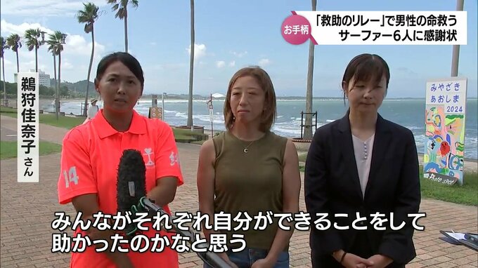 先月14日、宮崎市の木崎浜にそれぞれ訪れていた6人は、サーフィンをしていた55歳の男性が溺れた現場に居合わせました。