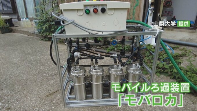 用水路や沢などから取った濁った水も飲み水や生活用水として安全なレベルに変えられるといい、持ち運びや設置が比較的簡単なことからモバイルろ過装置=「モバロカ」と名付けています。