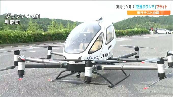 空飛ぶクルマ、次世代空モビリティの活用に向けた気運を高めようと、テスト飛行が27日、宮城県利府町で公開されました。