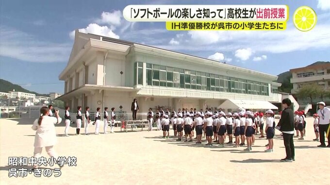 ソフトボールの楽しさを伝えようと、インターハイで準優勝した広島県尾道市の高校生たちが、呉市の小学校を訪れ、出前授業を行いました。
