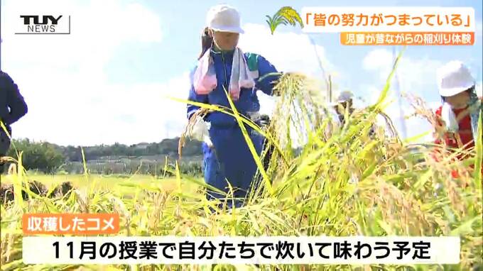 きょう収穫されたコメは、11月の授業で、児童たちが自分たちで炊いて味わうということです。