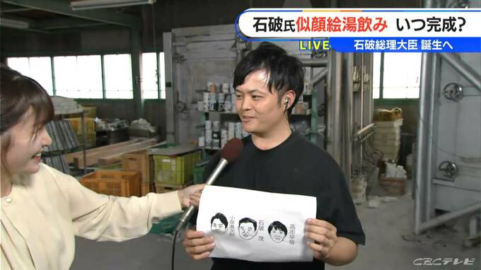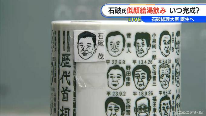 Q.今お話している商品は、白黒の歴代総理が書かれている湯飲みについてなんですが、その他にもカラーのものもあります。総理1人が書かれている湯飲みというものもあるんですよね。石破さんはどういったイラストの構想になる予定でしょうか?
