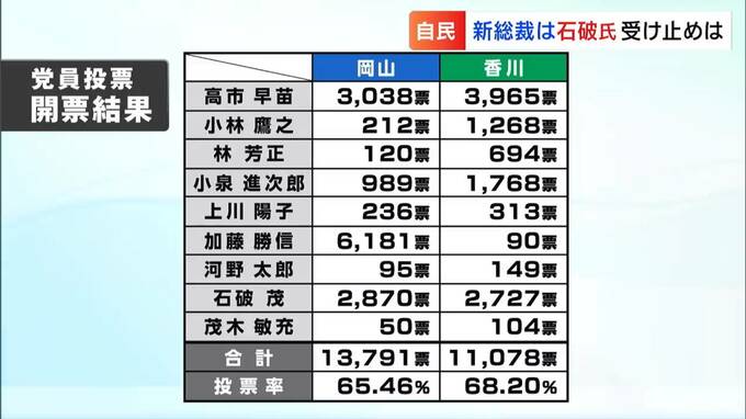 自民党の総裁選が行われ、決戦投票の末、石破茂氏が新総裁に決まりました。岡山・香川の県民からは新たな党の顔に期待する声、体質は変わらないだろうという諦めの声、反応は様々です。