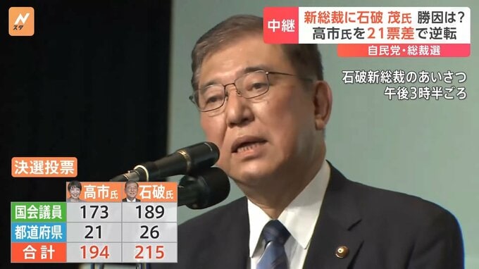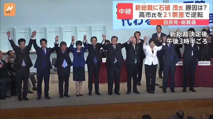自民党の新しい総裁は石破氏に決まりました。(9月27日「Nスタ」午後4時10分すぎの放送より)