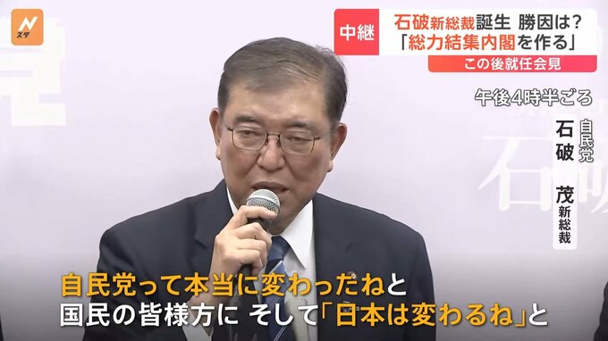 「総力結集内閣」作ると強調 石破新総裁が誕生