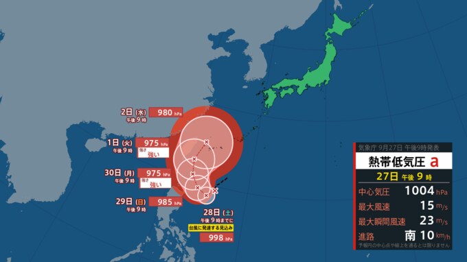 台風に発達の見込み…「熱帯低気圧a」の実況と予報
