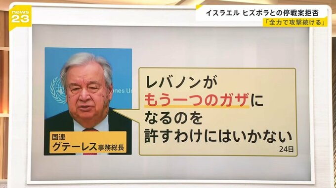 24日、国連のグテーレス事務総長は「レバノンがもう一つのガザになるのを許すわけにはいかない」と発言するなど、かなり緊迫した状態になっています。