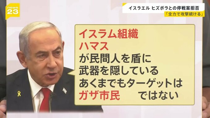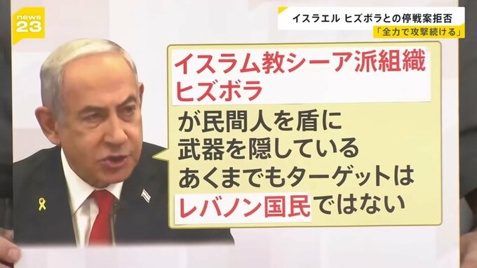 イスラエル ヒズボラとの停戦案拒否 「全力で攻撃続ける」