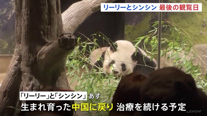 東京・上野動物園のジャイアントパンダ「リーリー」と「シンシン」が、あす、中国に返還されます。最後の観覧日となったきょうは、朝から多くの人が訪れています。記者「開園30分前ですが、最後にパンダを一目見よ…