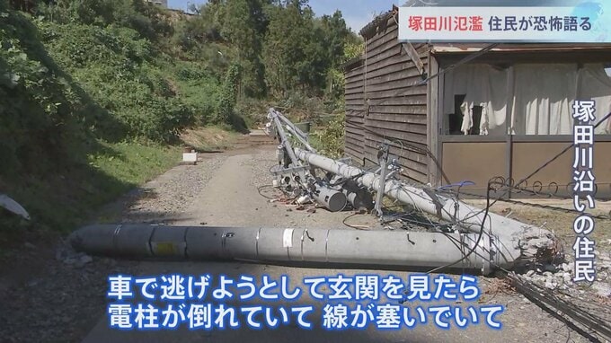 「車で逃げようとしたら玄関を見たら電柱倒れてて、電線が(道を)塞いでて」