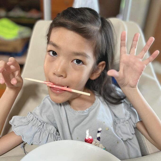 最後に、星野真里さんは「ふふっふふふっ」と、綴ると、ふうかさんが「こねりあめ」を楽しんでいる写真をアップしています。