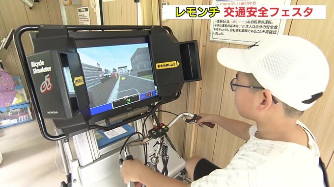 広島トヨペット交通公園で開かれた「レモンチ交通安全フェスタ」です。自転車シミュレーターのブースでは、小学生が、正しい乗り方や左右の安全を確認していました。
