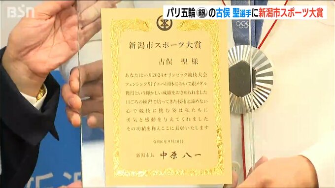 パリオリンピック™フェンシング男子エペ団体で“銀メダル”を獲得した古俣聖選手(新潟市西区出身)に、『新潟市スポーツ大賞』が贈られました。