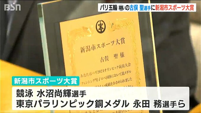 新潟市スポーツ大賞は、これまでに競泳の水沼尚輝選手や東京パラリンピック・マラソン銅メダリストの永田務選手などにも贈られていて、今回の古俣聖選手は15人目の受賞となります。