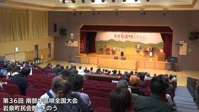 岩手を代表する民謡の一つ、「南部牛追唄」の発祥の地岩泉町で29日、愛好者による全国大会が開かれました。