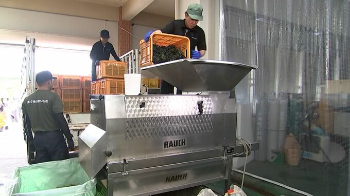 こちらがワイン用の品種「香大農R-1」です。きょう(30日)は約4トンがさぬきワイナリーに持ち込まれ、機械でつぶした実が醸造用タンクに送られました。