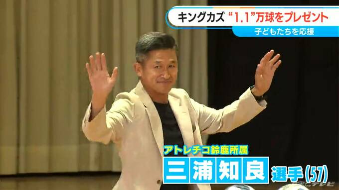 アトレチコのおひざ元、三重県鈴鹿市の小学校に訪れた、キングカズこと三浦知良選手(57)。明治安田の未来世代応援アクションwithカズの一環で、三浦選手の「背番号11」にかけた“1.1万球”、1万1000個のサッカーボールを全国の子どもたちに贈っています。