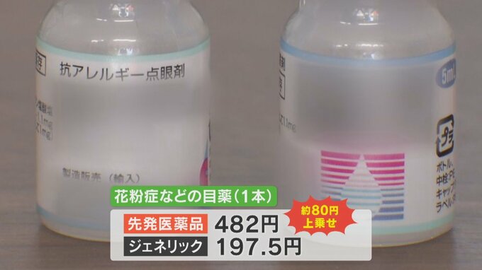 花粉症などに処方される目薬は、先発医薬品は1本約80円の負担増となります。