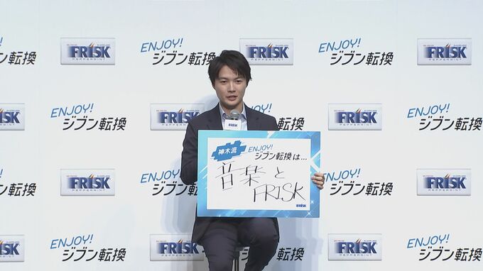 新CMの「ENJOY!ジブン転換」というコンセプトにちなんで、自身の「ジブン転換」の方法を問われると、神木さんは「音楽とFRISK」とし、”音楽が大好きで、(出演する)作品によってテーマの曲を決めたりすることがある。1日に複数の現場があると、「ジブン転換」をするっていうことがなかなかできないことが多い。その時に、僕は自分で決めた演じる役のテーマ曲を聞いて、さらにFRISKを入れる。これからも「音楽とFRISK」で、「ジブン転換」をしていきたい ”とコメント。