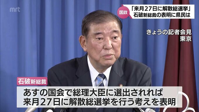 自民党の石破新総裁は、10月1日の国会で総理大臣に選出された場合、10月27日に解散総選挙を行う考えを表明しました。およそ1か月後に行われる見通しとなった解散総選挙、宮崎県民の声を聞きました。(自民党 石破…