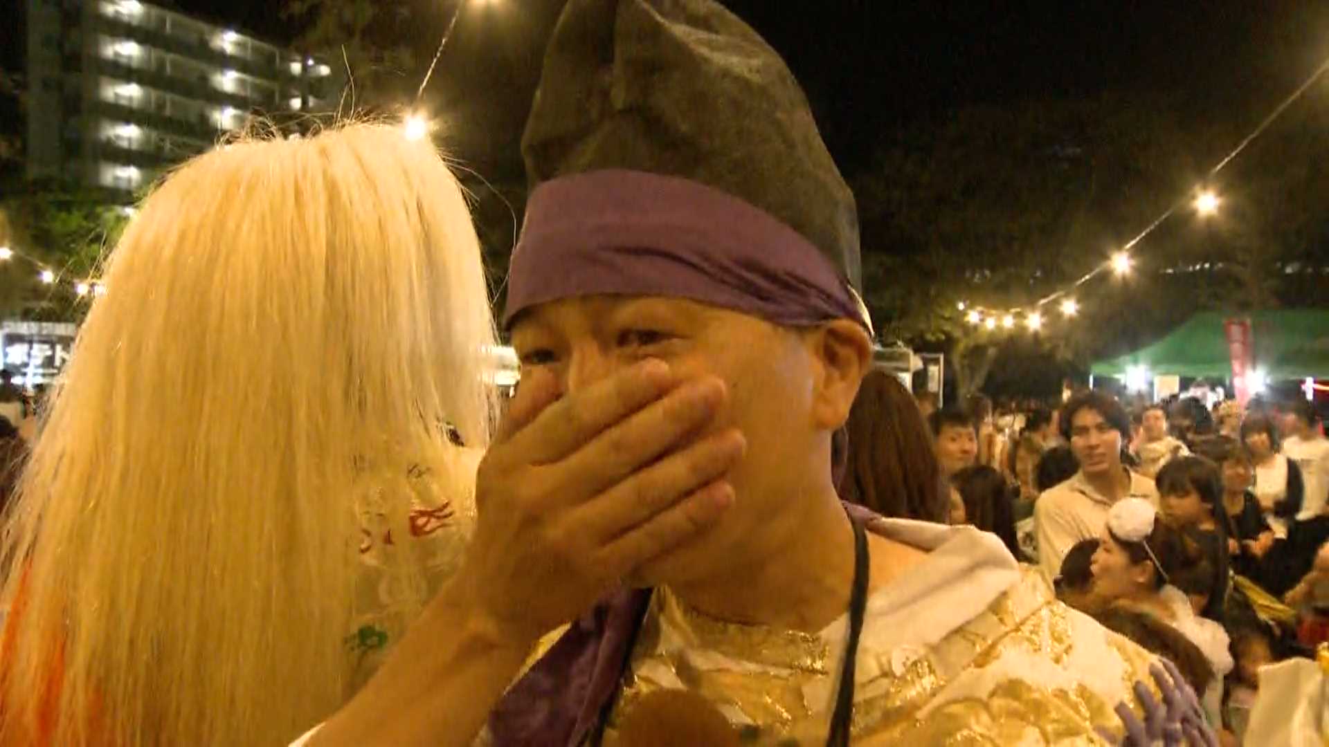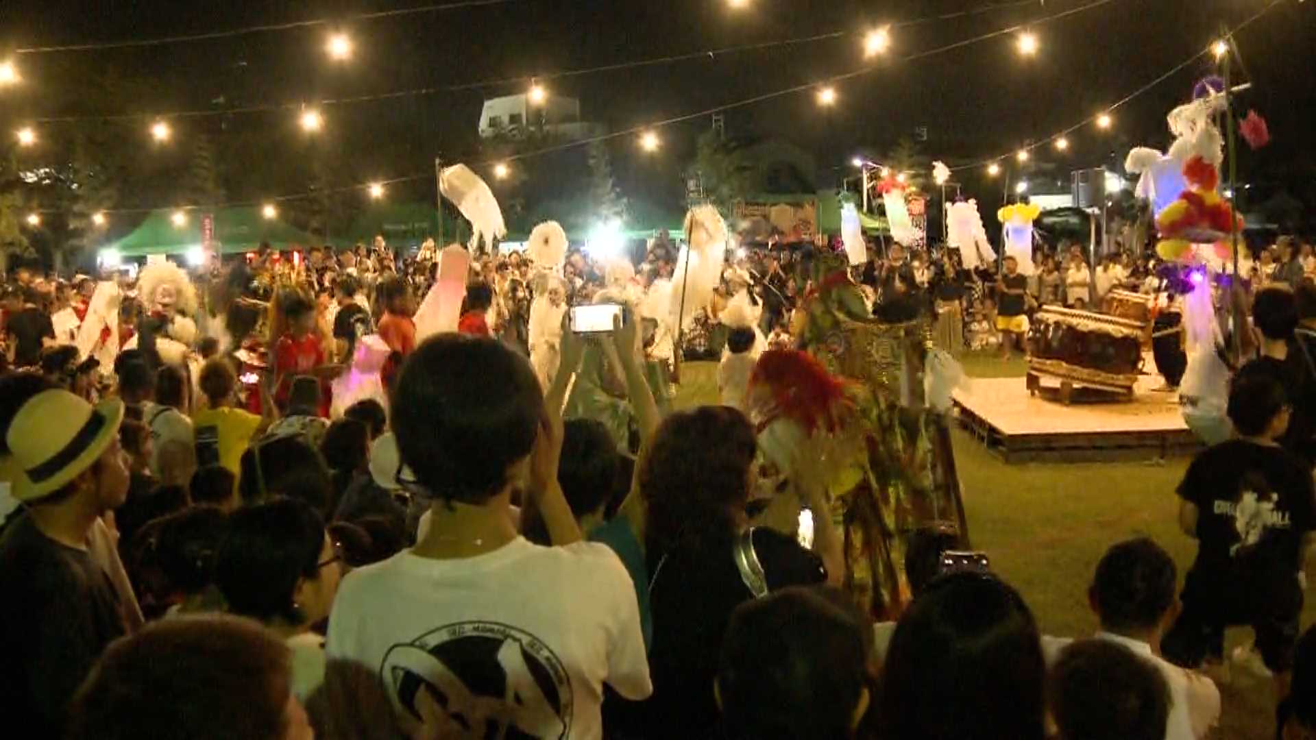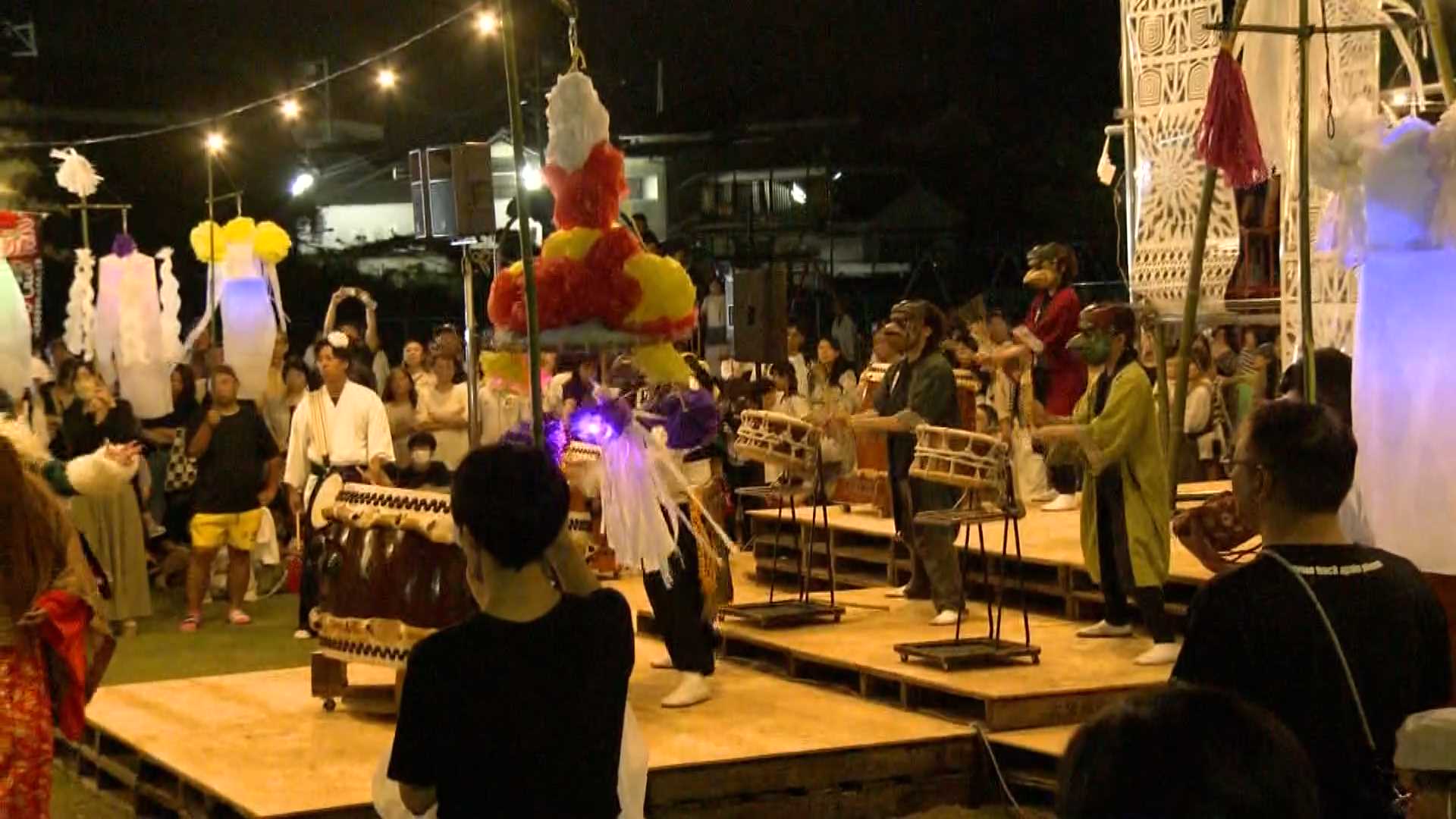 妖怪が訪れた客を輪に引き入れて共に踊り、2時間の「妖怪夜市」に幕が下ろされました。