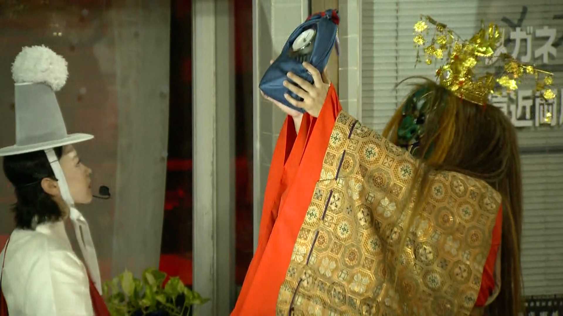 6つの店舗を回った後、フィナーレを迎える会場では、「神楽をベースとした舞」と「太鼓」の合同パフォーマンスを披露。