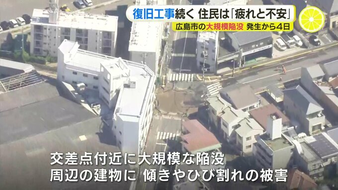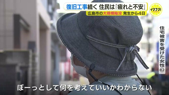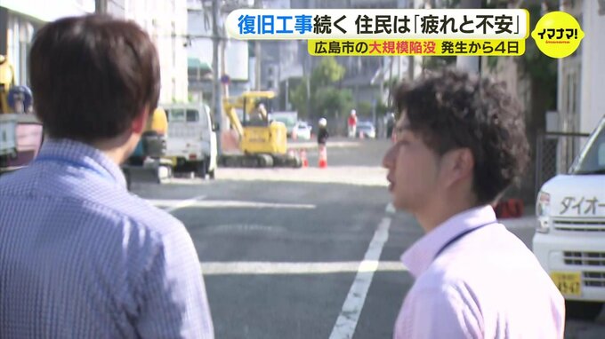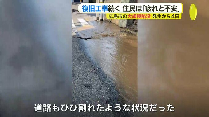 先週、広島市の道路で大規模な陥没が発生し、30日で4日となりました。市は引き続き下水管の調査など復旧工事を続けています。この週末も避難生活をした住民からは疲れと不安の声が聞かれます。