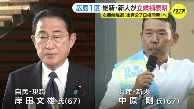 広島1区では、自民党現職の 岸田文雄 氏(67)と共産党新人の 中原剛 氏(67)が立候補を予定しています。