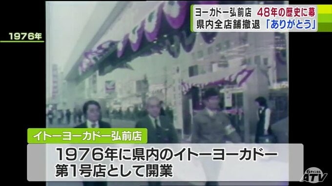 弘前店は、1976年に青森県のイトーヨーカドー第1号店として開業し、バスターミナルに直結する商業施設として弘前市民を中心に48年に渡って親しまれてきました。