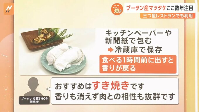 「ブータン松茸SHOP」の担当者によると、おすすめの食べ方は、「すき焼きです。香りも消えず肉との相性も抜群」だということです。