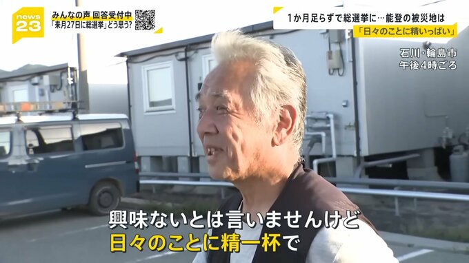 「能登は誰が(総理に)なろうが立ち直る見込み無し。どう生活していくか。人がおらんようになって何もかもがだめ」
