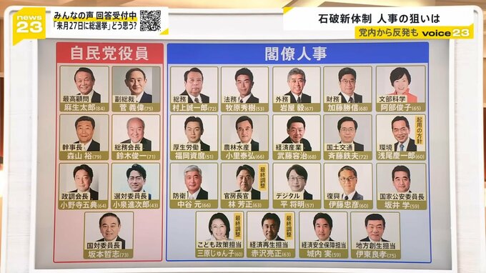 10月1日の臨時国会で正式に石破さんが総理大臣に指名され、そして新内閣が発足します。このような顔ぶれになるのではないかとみられている中で、組閣人事について総務大臣に起用される見通しの村上誠一郎さん。村上さんは2022年に、安倍元総理について「国賊」と発言したとされていて、党の役職停止1年の処分を受けていました。入閣させた石破さんの狙いはどこにありますか?