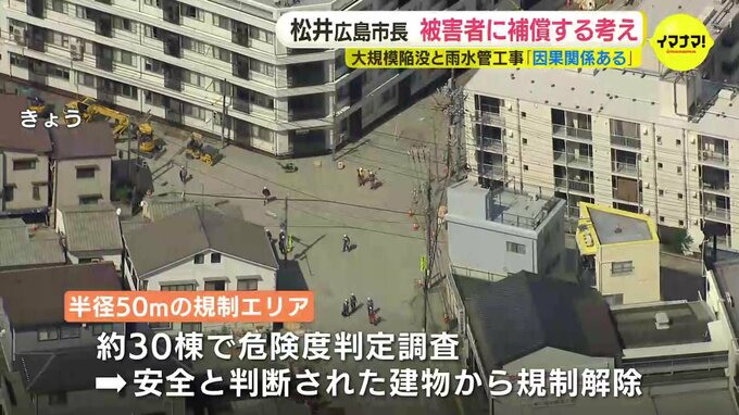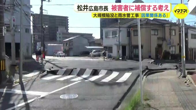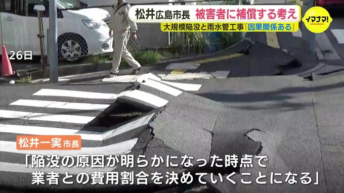 広島市の松井市長は、今回の大規模な陥没と市の雨水管工事の因果関係を認め、被害を受けた人には今後、補償していく考えを示しました。