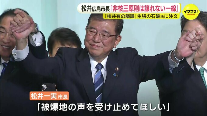 自民党の 石破茂 新総裁が総裁選中、「核共有」の議論が必要と主張したことについて、広島市の松井市長は、「非核三原則は譲れない一線だ」と指摘しました。広島市 松井一実 市長「非核三原則は国是としてしっか…