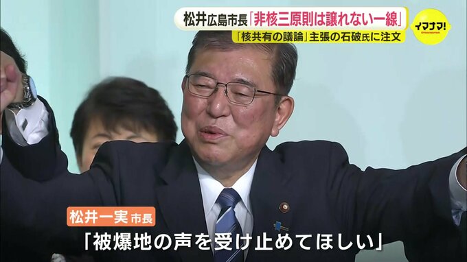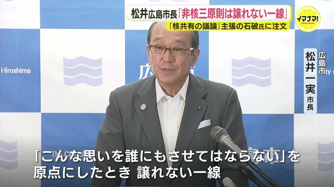 自民党の 石破茂 新総裁が総裁選中、「核共有」の議論が必要と主張したことについて、広島市の松井市長は、「非核三原則は譲れない一線だ」と指摘しました。