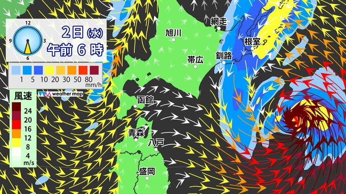 【1日12時~2日12時までの24時間予想降水量 多い所】