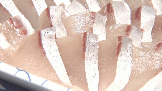 (県漁業協同組合・中根隆文組合長)「魚臭さが全然なくてよくカボスの香りがきいてるし味も良いし、実も引き締まっている感じがする。ぜひとも食べていただきたい」