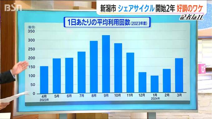 ただ新潟ならではの問題もあります。こちら、月別の1日当たりの平均利用回数ですが最も多かった9月はおよそ327回、一方、冬の1月、12月は3分の1ほどになります。