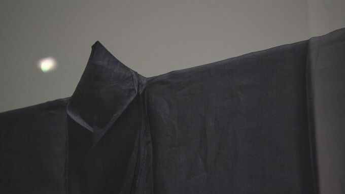 このうち、極細の糸で織り上げ絹のような光沢が美しい黒朝衣(クルチョージン)は、19世紀に士族の男性が礼服として着用したもので、青い染料である藍を何度も染め重ねることで深みのある黒を生み出しています。