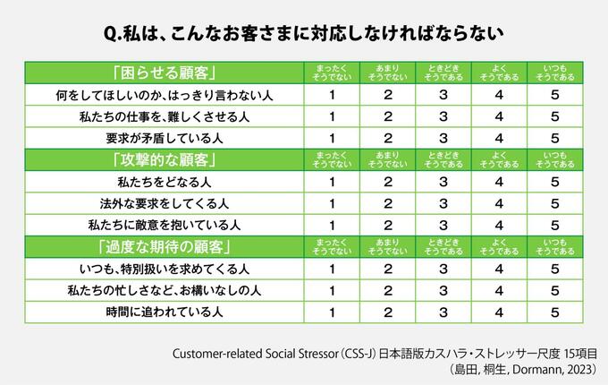 そして2つ目は、従業員が「日常的にどんな困難な顧客に相対しているか」を可視化できる指標です。これはもともと英語圏で研究開発されていたものを、筆者らが日本語版化したものです。先に紹介したUAゼンセンカスハラ実態調査2024年度版のほか、いくつかの企業でこの指標を用いて調査研究を行っているため、4万人ほどのデータが蓄積されているところです。