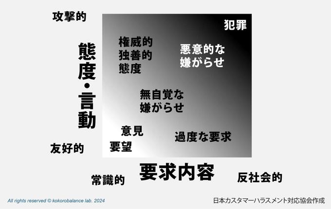 そのカスハラのグレーゾーンを明確にするために、私が代表を務める協会では、2つのツールを用いてその線引きを明らかにしています。