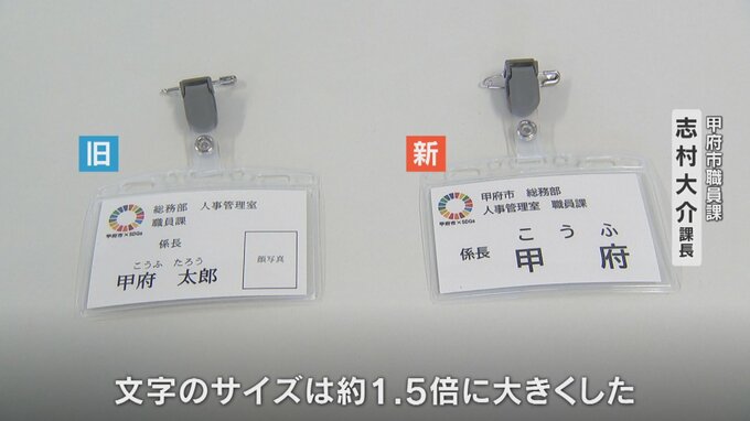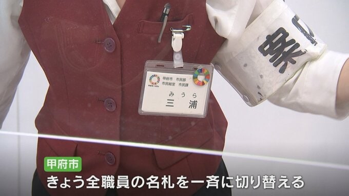 甲府市は1日、すべての職員の名札を一斉に切り替えました。